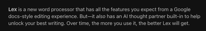 I have done this type of work before for a tech startup and the process was pretty tedious and took a lot of human hours to write posts about the app and instructions on how to utilise its features to the fullest. While I loved working with the startup and the experience was super cool, the work done could definitely be replaced by Lex and Lex would probably do it even better than I did.