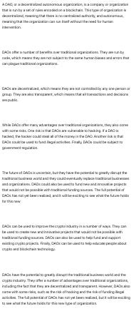 4. Finally, DAOs can be used to help educate people about crypto and blockchain technology.