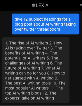 Obviously, I signed up for LEX and started playing around. The first part was a a default prompt and the highlighted parts were my input.